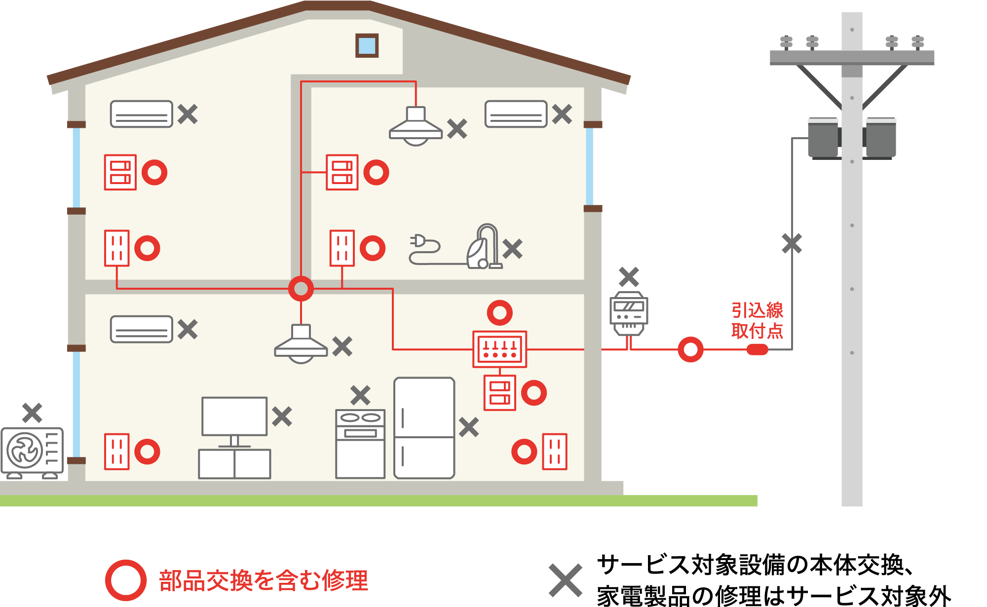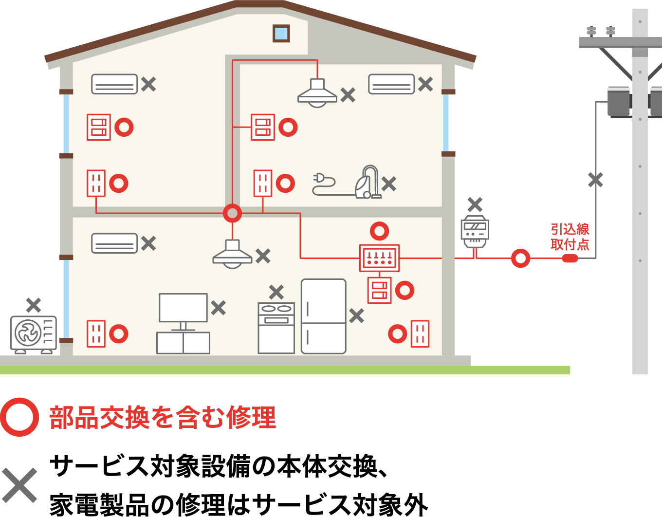 - サービス対象範囲における、修理1回あたりの上限金額は30万円(税込)で、超過分の費用はお客さまのご負担となります。